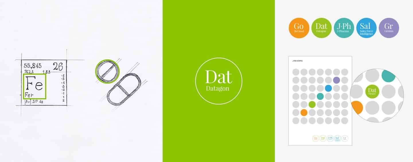 Tutti i loghi della suite si basano su elementi emblematici del settore sanitario al quale sono rivolti diventando un’icona. L’impaginazione e la scelta del font graziato derivano dalla tavola periodica degli elementi. Il cerchio dentro il quale è inscritto il marchio proviene dalla classica forma geometrica delle pastiglie medicinali. Questa composizione dà origine ad un simbolo moderno e di facile lettura.